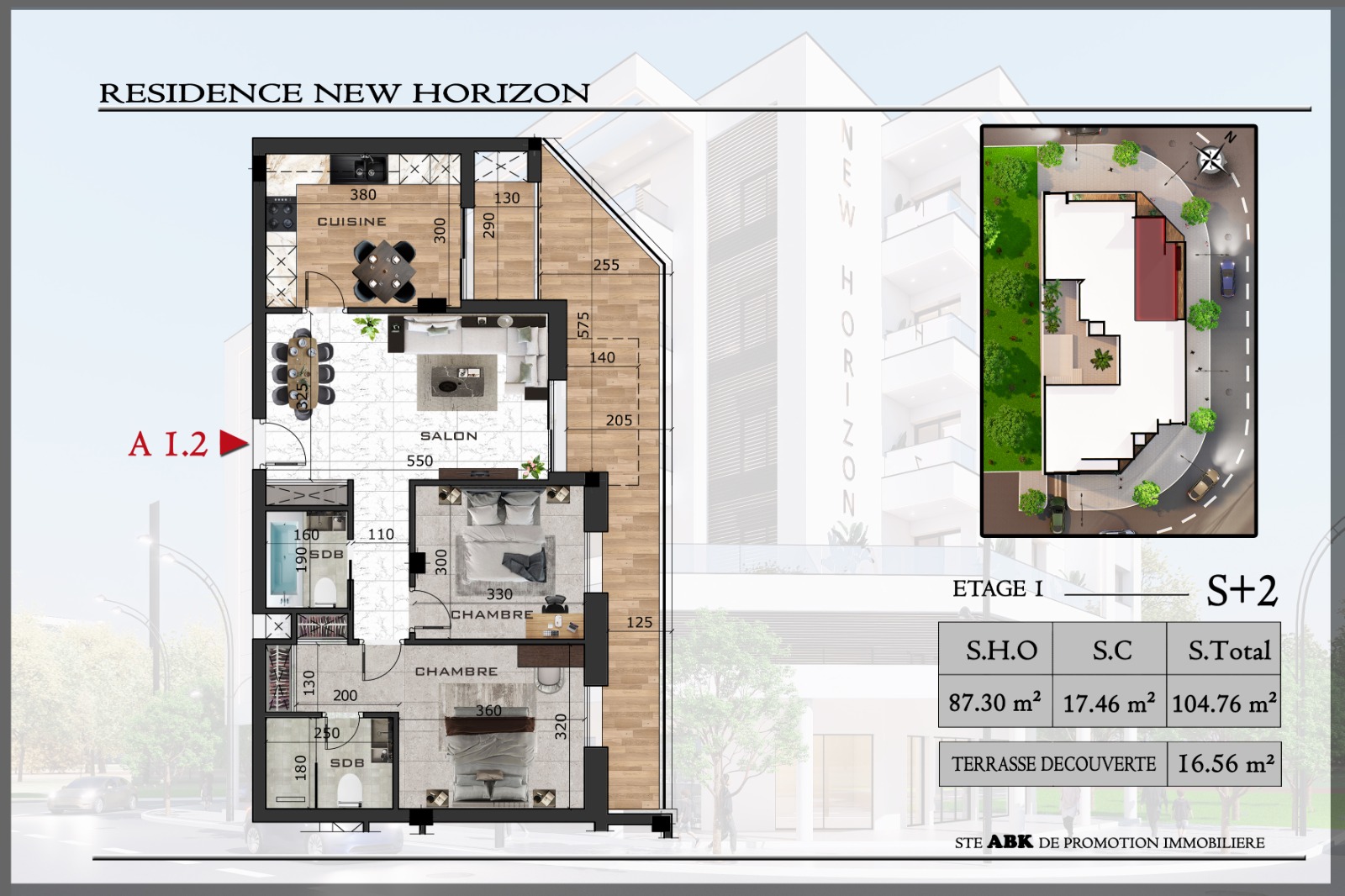 Découvrez les appartements S+2 de la résidence New Horizon, un projet immobilier moderne situé à AFH Bouzayen à Sfax. Conçus par ABK Immobilière, ces appartements offrent un cadre de vie confortable, lumineux et fonctionnel, idéal pour les familles comme pour les investisseurs.